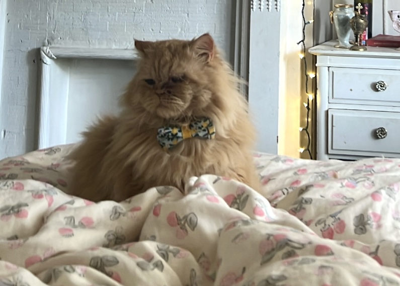 No Kids, but I have a biggrumpy orange Persian cat named Toulouse!